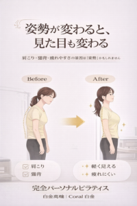 ✔ 猫背が改善して姿勢を褒められるようになった